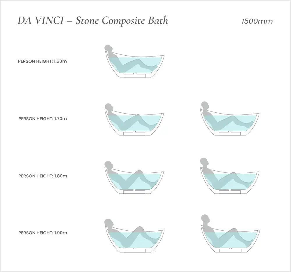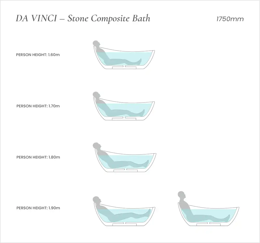 Our Da Vinci freestanding stone composite bath is the ideal one person bath suited both for indoor and outdoor projects. A simple and beautiful shaped bath for a unique bathing experience.