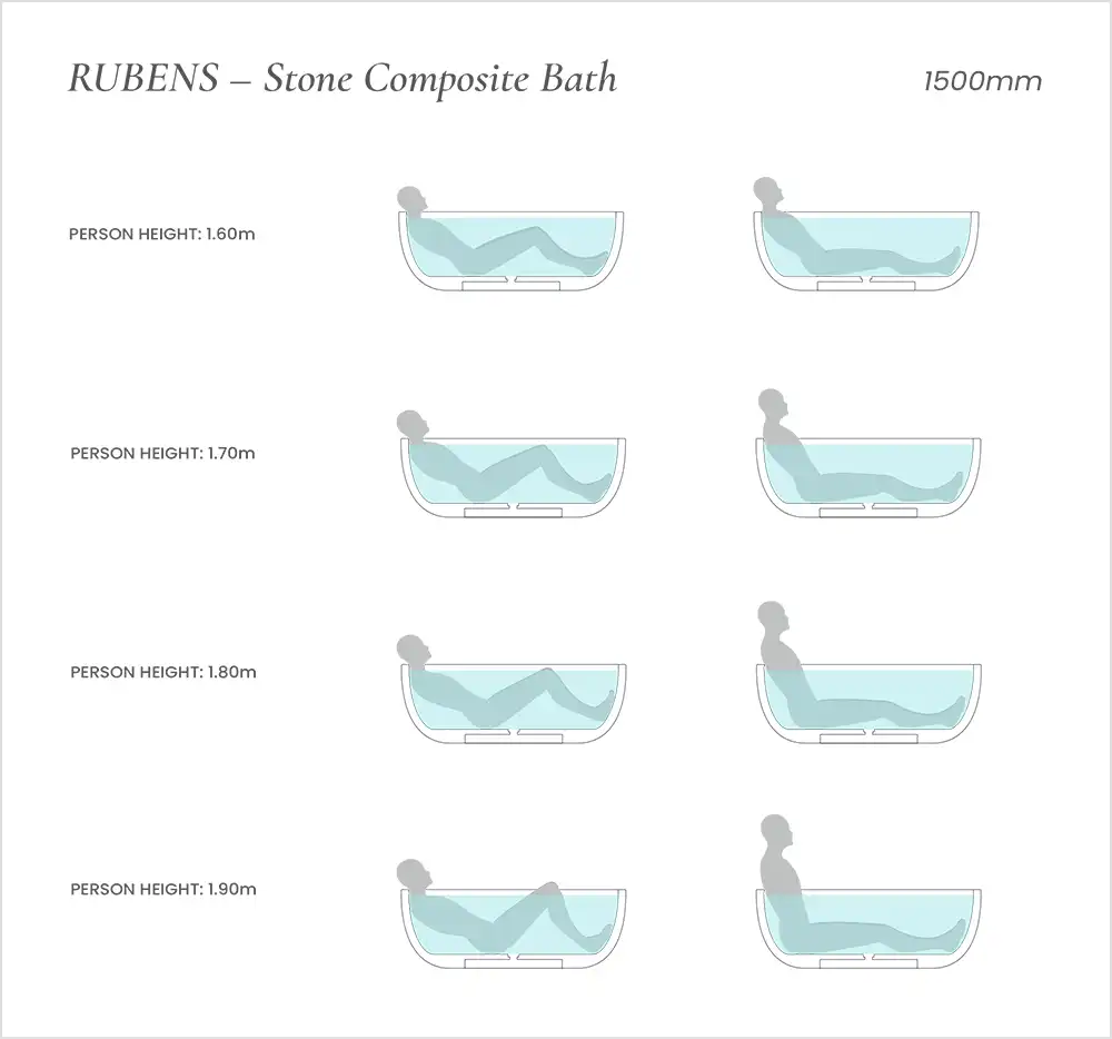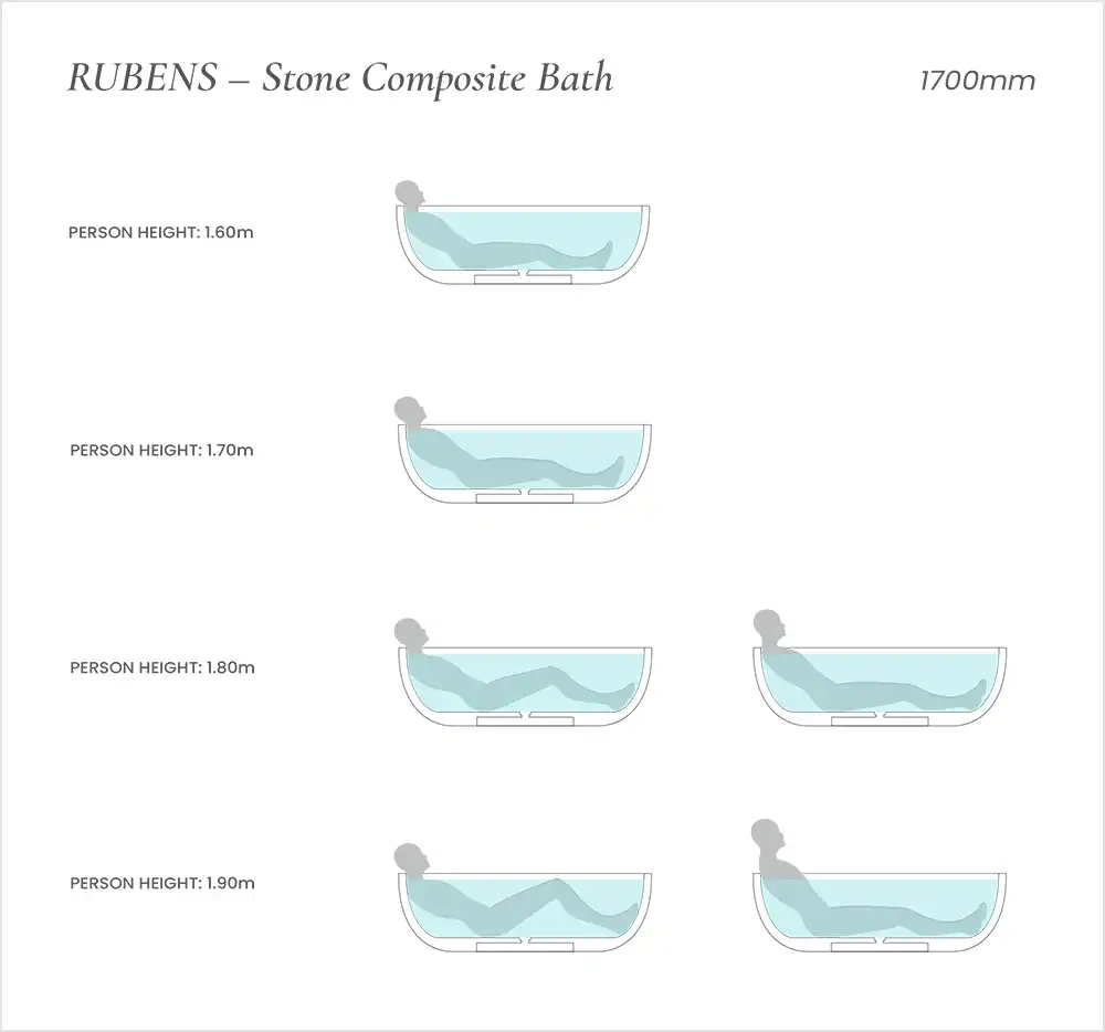 Our Rubens freestanding stone composite bath is a classic bath in its shape yet contemporary with its thicker walls (50mm). While symmetrical in shape, it is best suited for a one person bathing experience, whether indoor and outdoor.