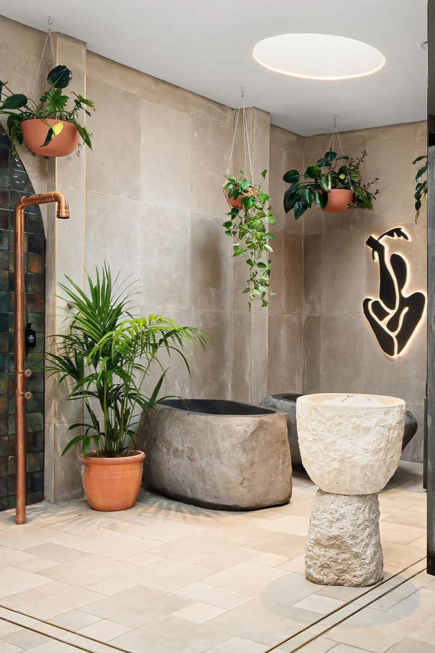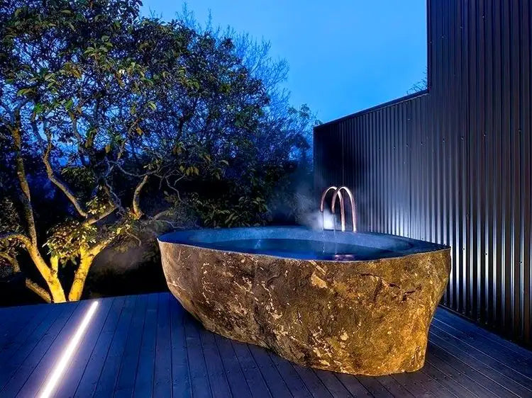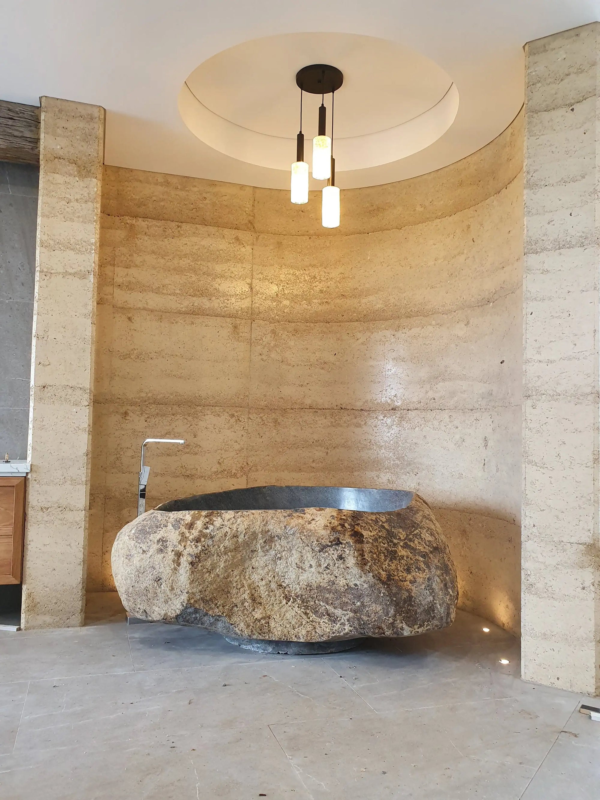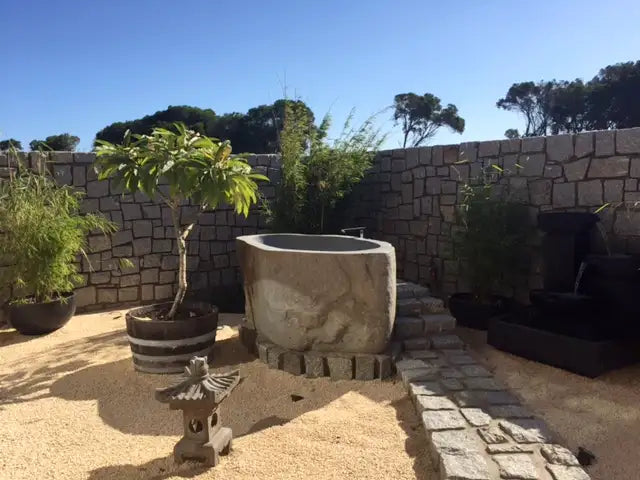 Megalithic rock, also known as river stone baths have become popular over the years, particularly for outdoor bath projects. They are stunning and create a focal point in any garden / outdoor living area design. The rock used for our river stone baths is taken from the mountains of Indonesia and hand-carved over 6 weeks to your requirements. It can be finished in a thick flat edge or a blunt rounded edge.